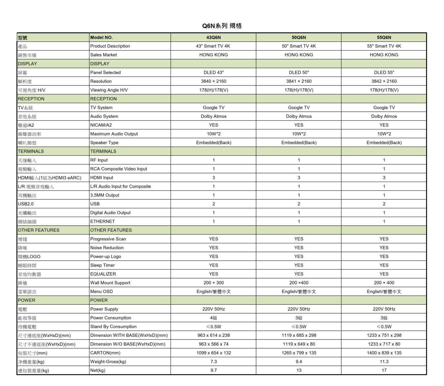 HISENSE 海信 43Q6N 43吋 4K SMART TV