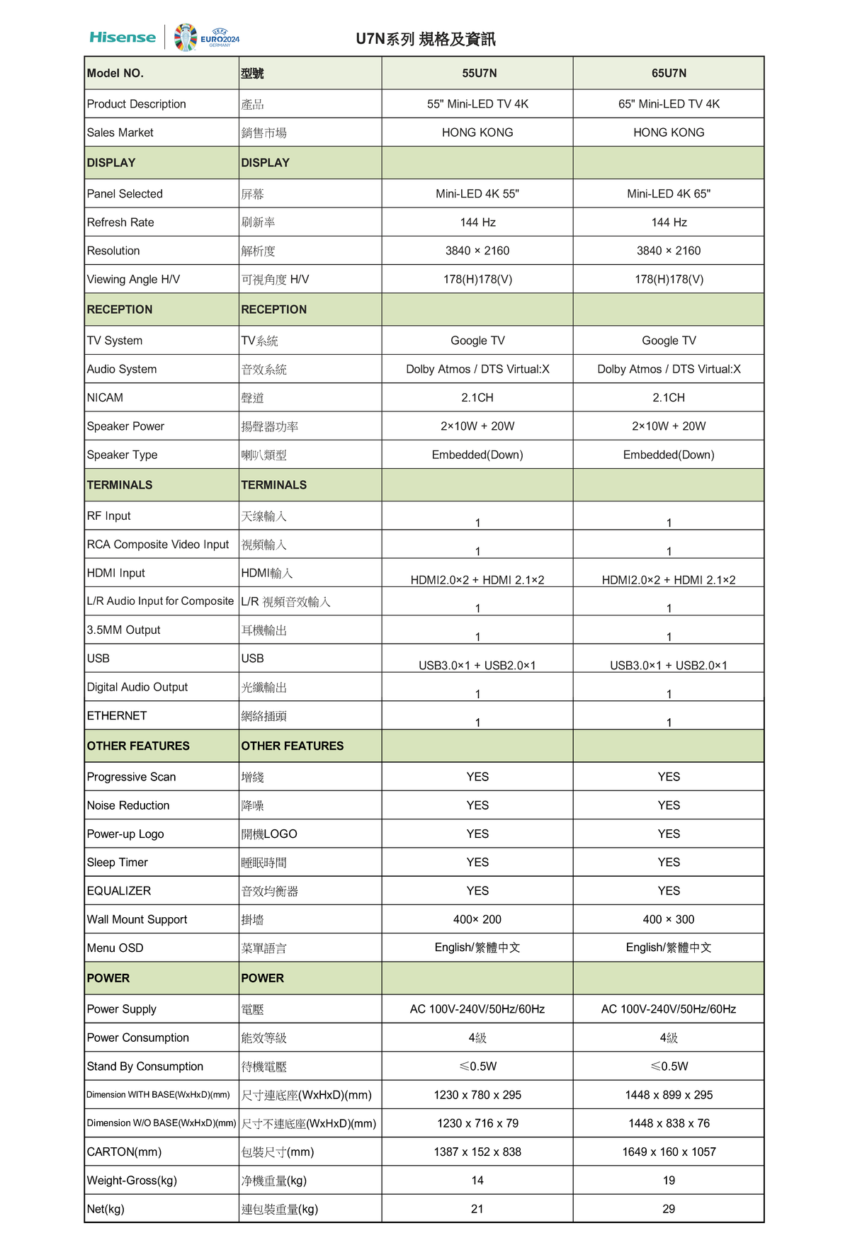 HISENSE 海信 55U7N 55吋 4K SMART TV