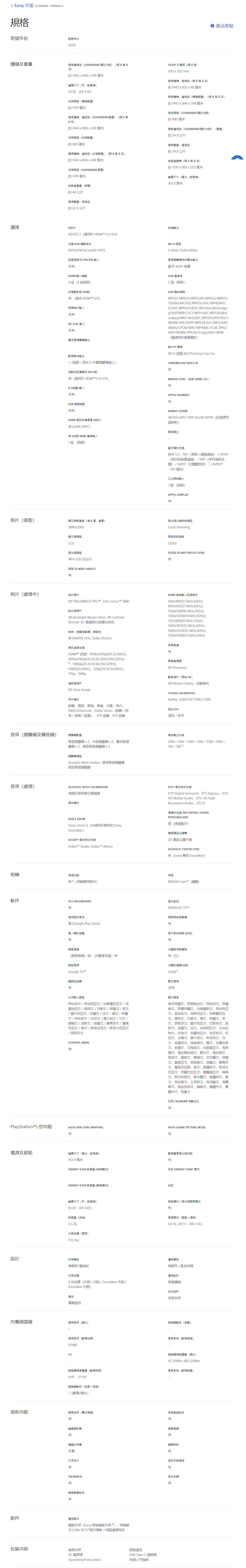 | 螢幕尺寸 (吋) | 65 吋 |