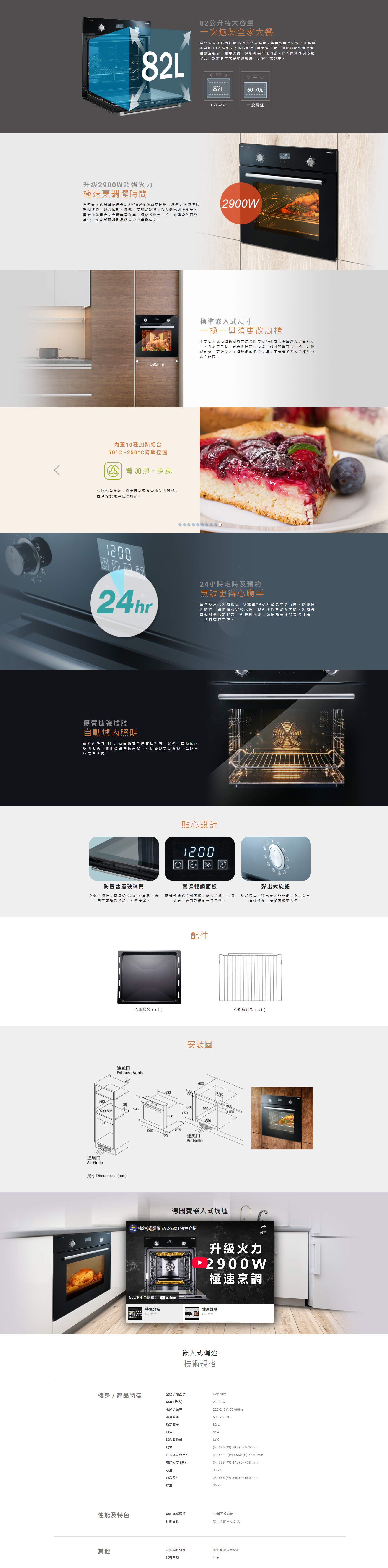 GERMAN POOL 德國寶 EVC-282 82公升 嵌入式焗爐