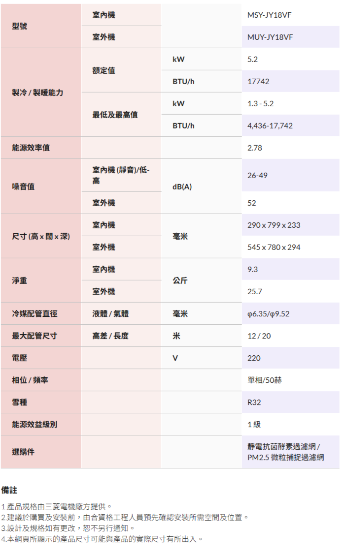 | 安裝款式 | 掛牆分體式冷氣機 |
