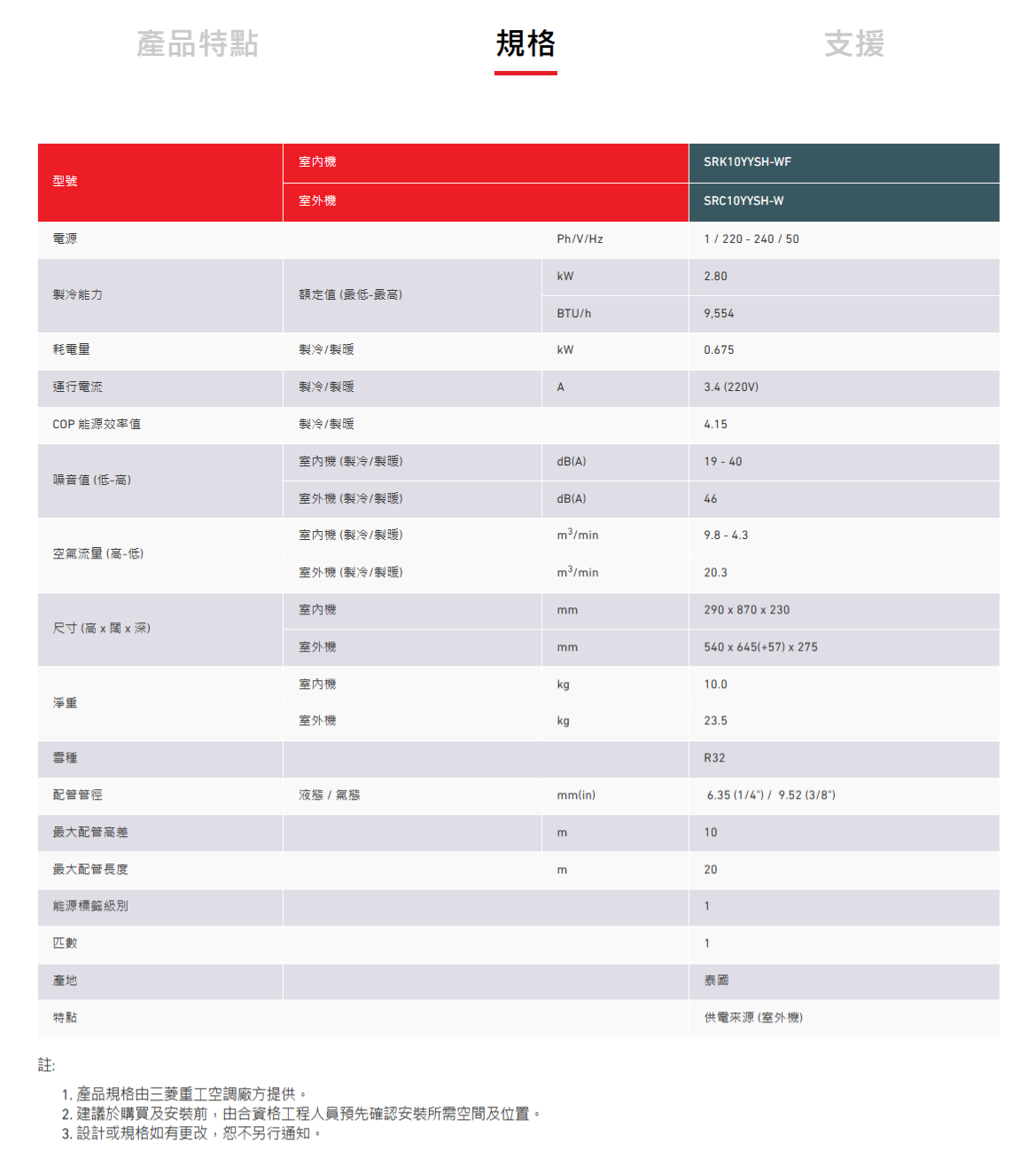 MITSUBISHI HEAVY INDUSTRIES 三菱重工 SRK10YYSHWF 二匹 變頻淨冷掛牆分體式冷氣機 (附遙控)