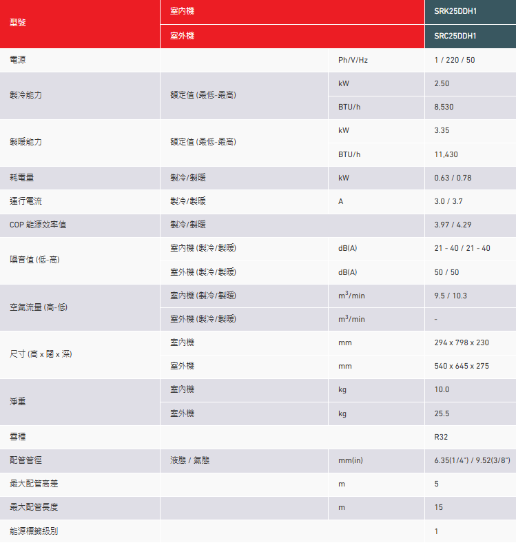 | 機身尺寸- 室外機 寬x高x深(毫米) |