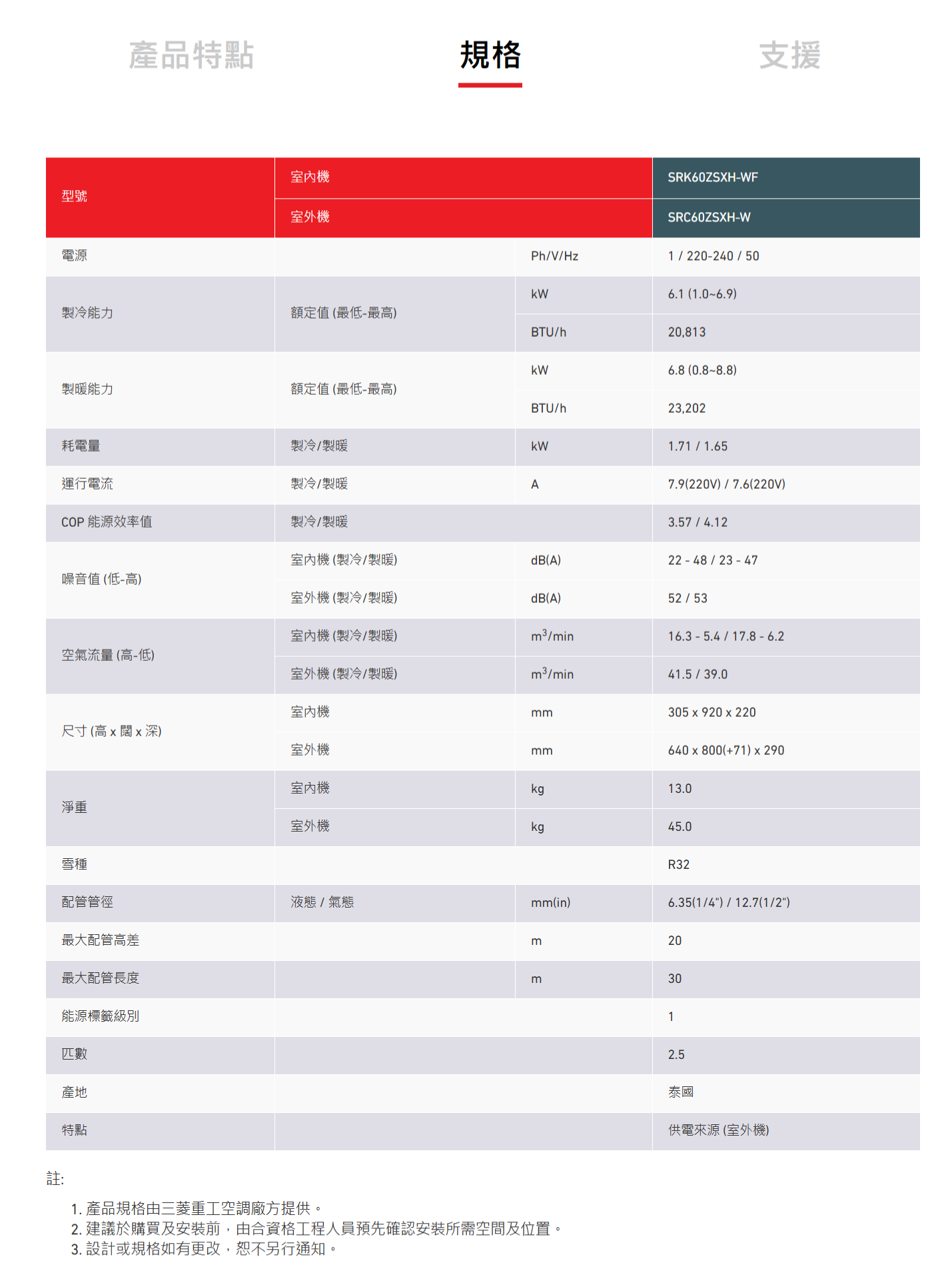 MITSUBISHI HEAVY INDUSTRIES 三菱重工 SRK60YYSHWF 二匹半 變頻冷暖掛牆分體式冷氣機 (附遙控)