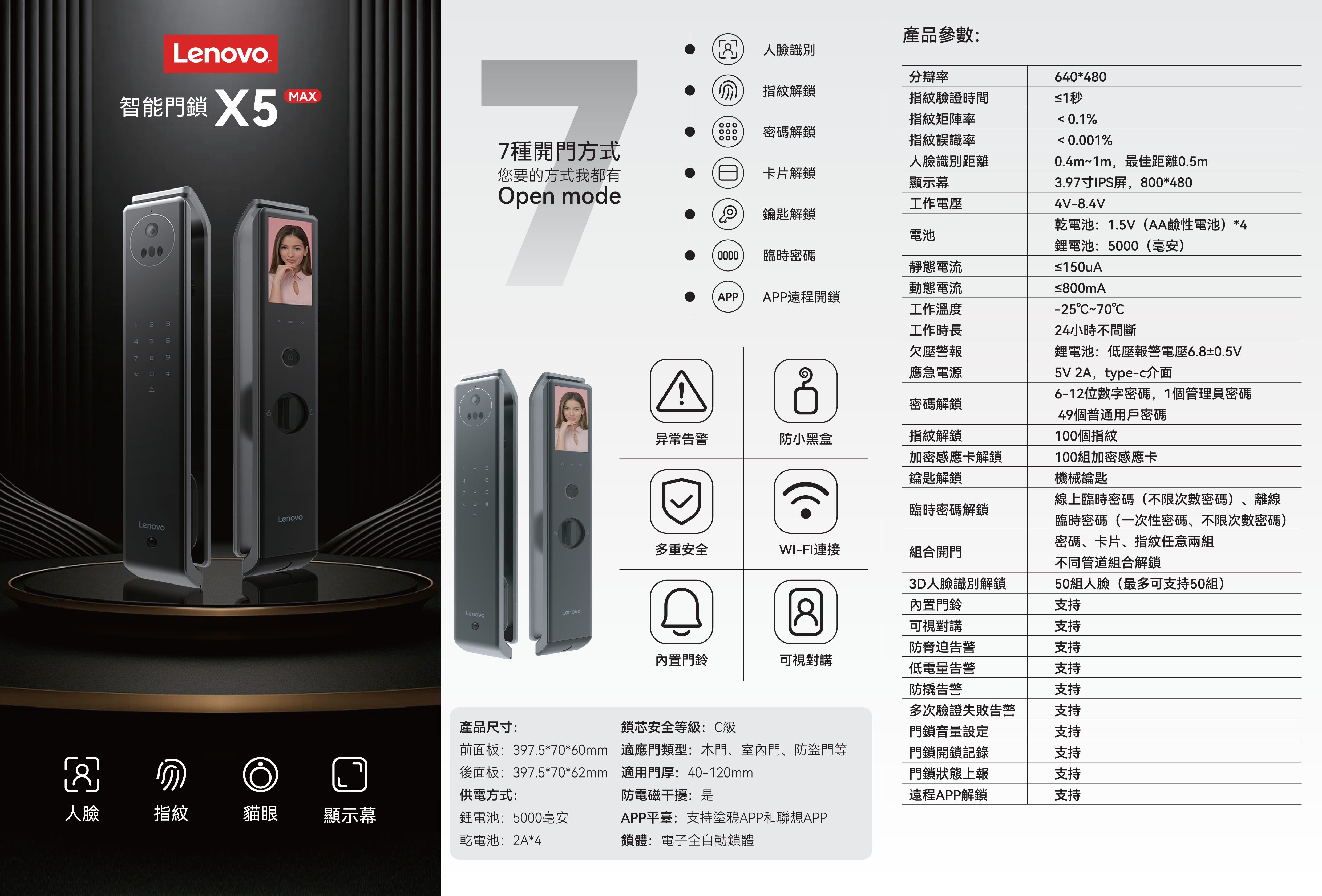 LENOVO X5 MAX 人臉辨識/門眼智能鎖