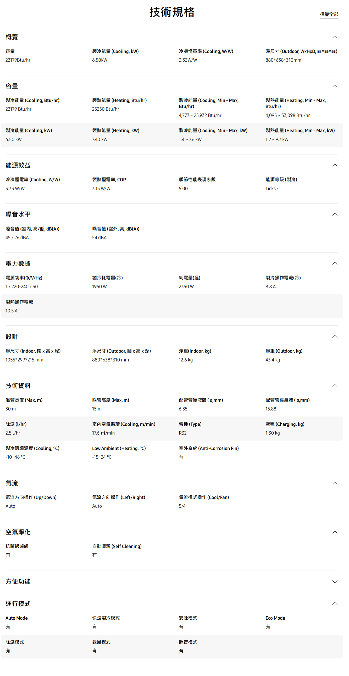 | 冷氣類型 | 冷暖型 |